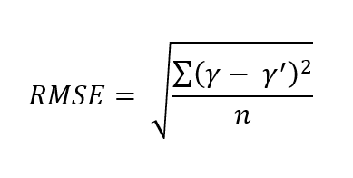 RMSE is represented by the following formula: